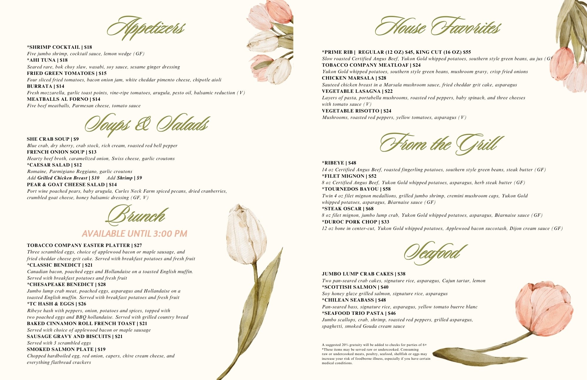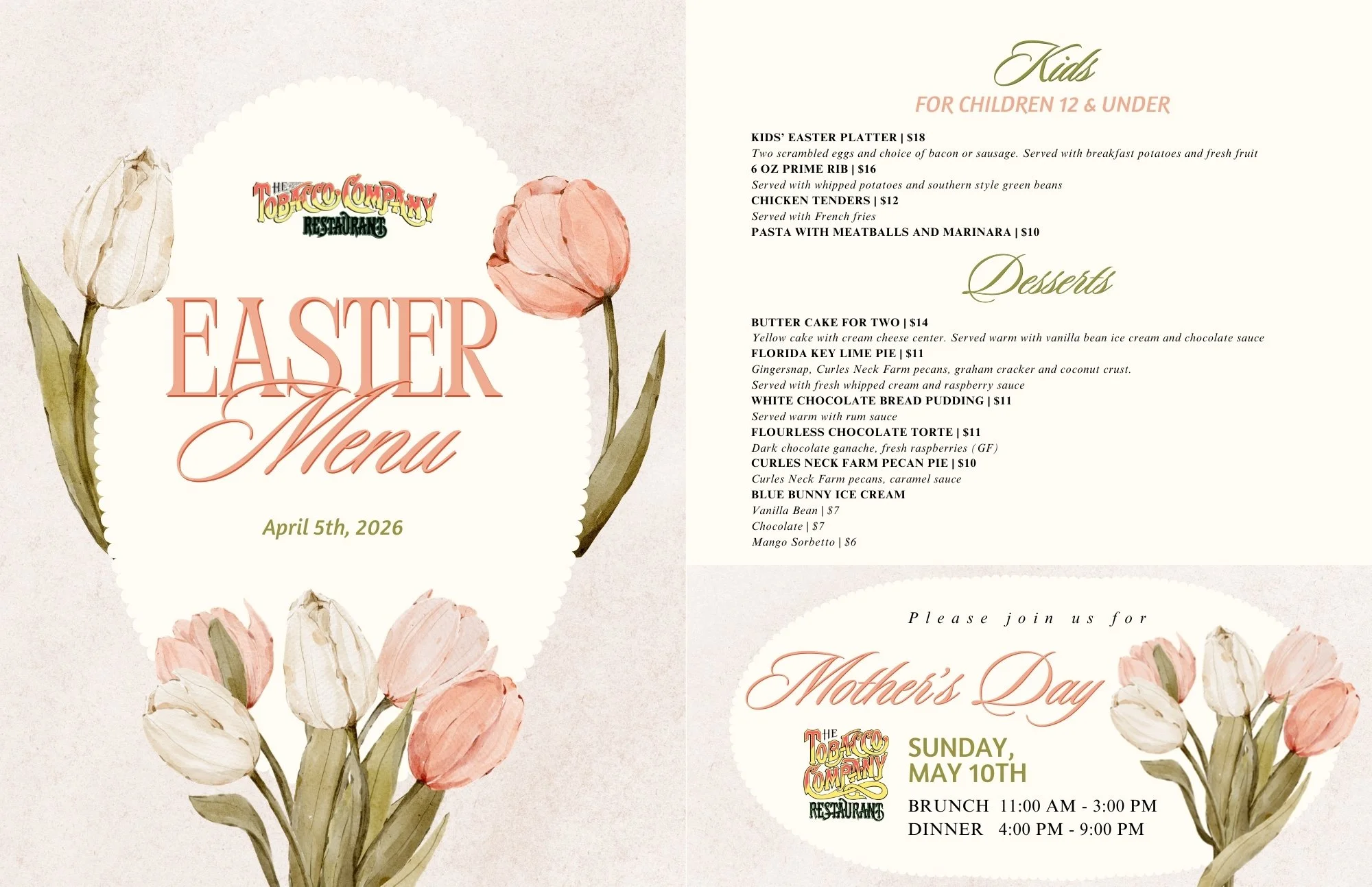 Reservations can be made by calling 804-782-9555 or online via OpenTable below. Please ensure to navigate to Sunday, April 5th using the widget below. Parties greater than 10 are not accepted.